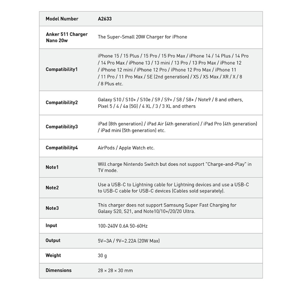 [Star] Anker PowerPort III Nano Charger 20W Kepala Charger Fast Charging A2633