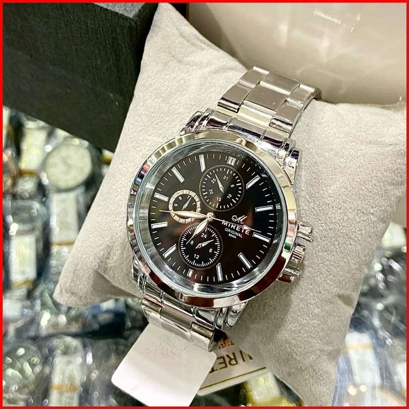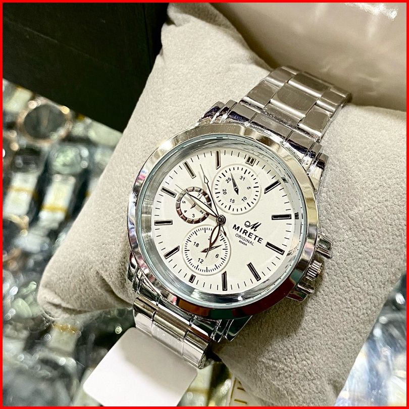 Jam Tangan Pria Mirete Stainless Steel Tahan Air Analog Tipe 9040-a