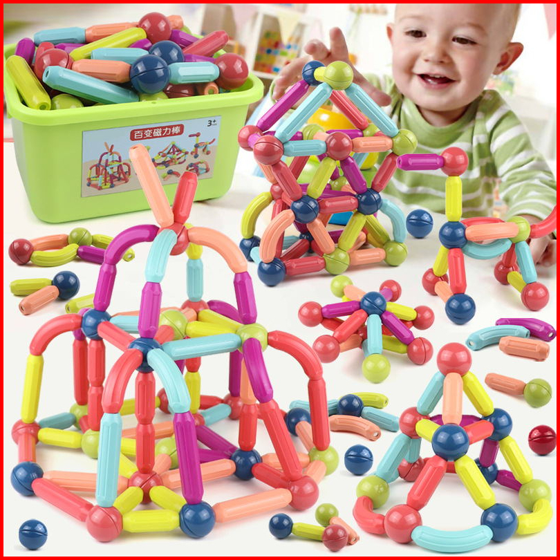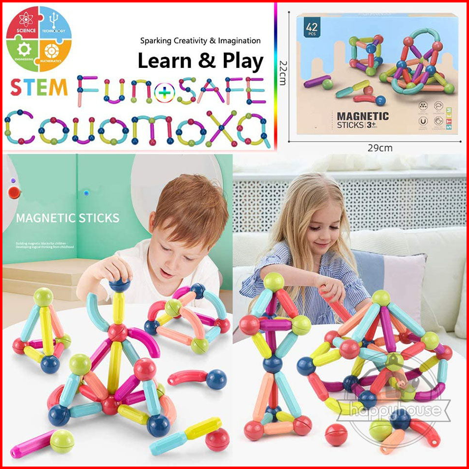 Mainan Edukasi Anak Balok Susun Magnet Stick 3d Puzzle Kreatif Bangun Rumah Bentuk