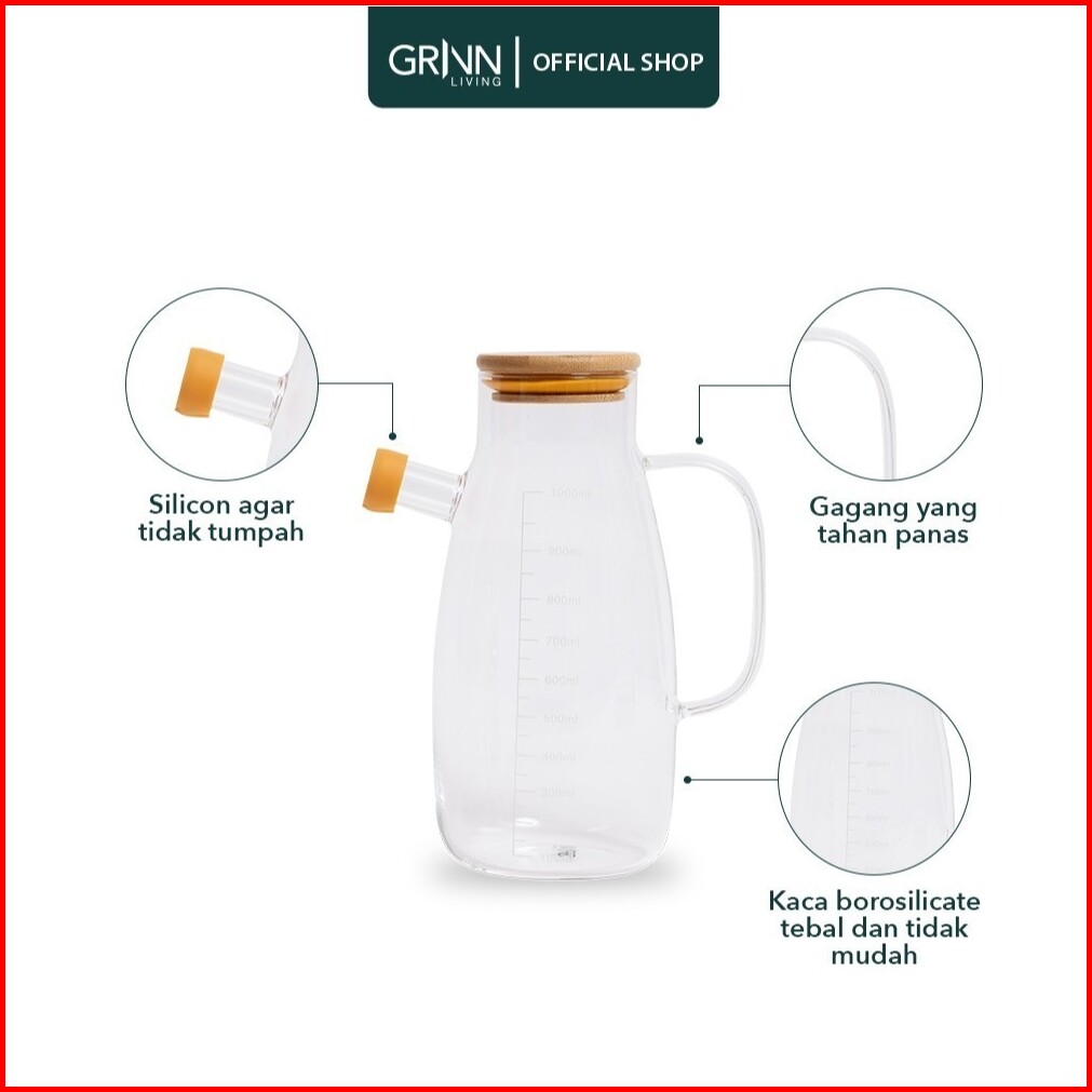 Grinn Living Cleo Botol Minyak Kaca Tempat Minyak Goreng 1000ml Dengan Tutup Kayu Bambu Aestheti