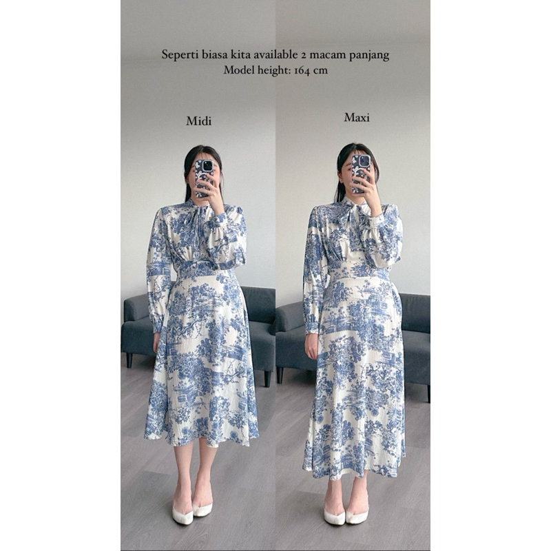 Kanon - Ibuki Crinkle Dress - Dress Vintage Crinkle Midi Dan Maxi Motif Abstrak Hijab Friendly