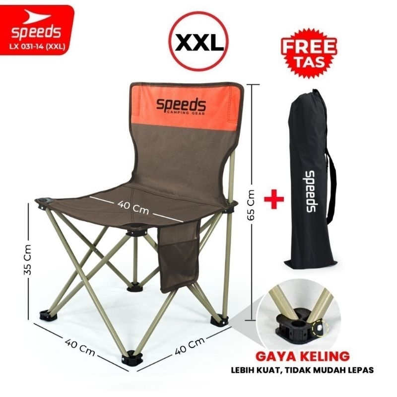 Speeds Kursi Lipat Portable Kursi Outdoor Camping - Black Brown