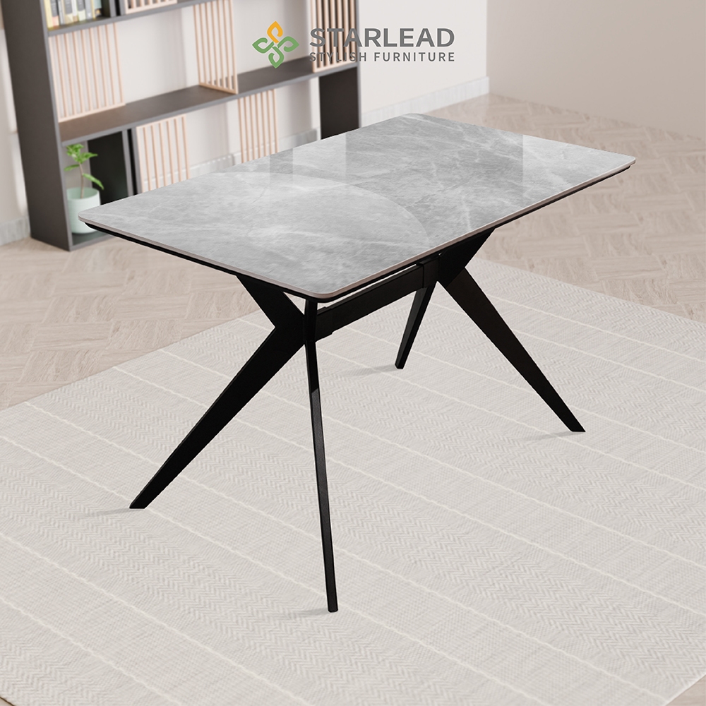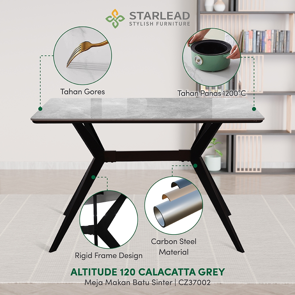 Starlead Set Meja Makan Sintered Stone Altitude 120Cm Calacatta Grey | Dining Table Minimalis
