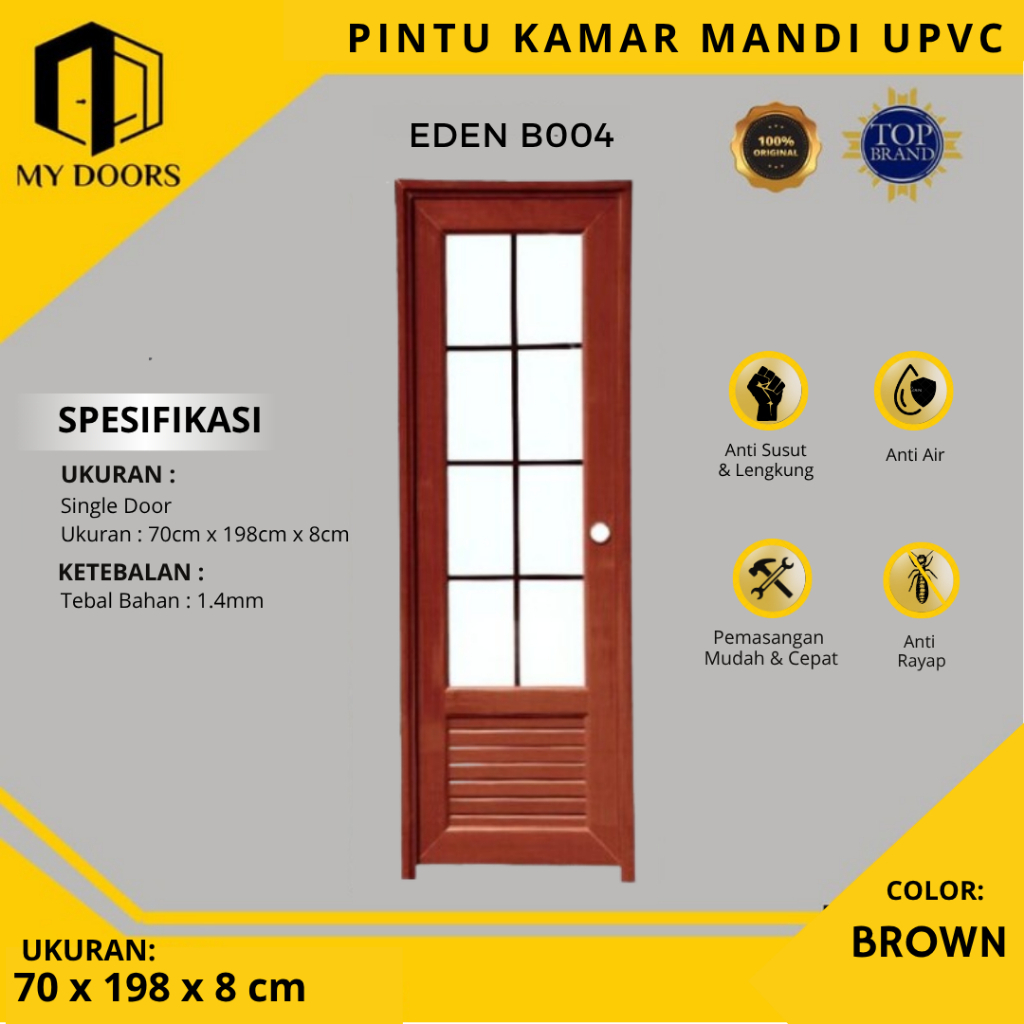 Pintu Kamar Mandi UPVC Eden 70x198 Lengkap Dengan Handle Dan Engsel