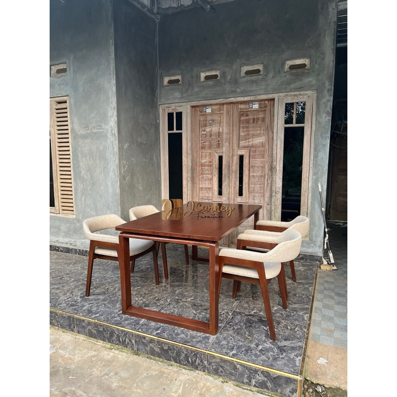 Meja Makan Set Kayu Jati Kursi Minimalis Modern Terbaru Mewah Elegan