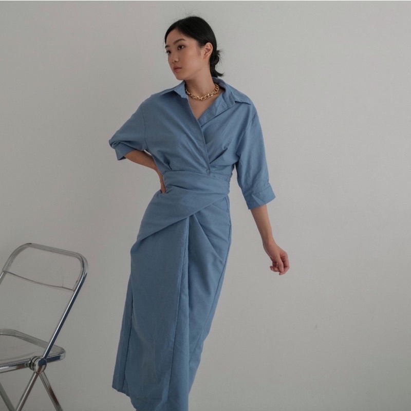 Seya - Cora Wrap Dress - Dress Kemeja Dengan Rok Midi Lilit