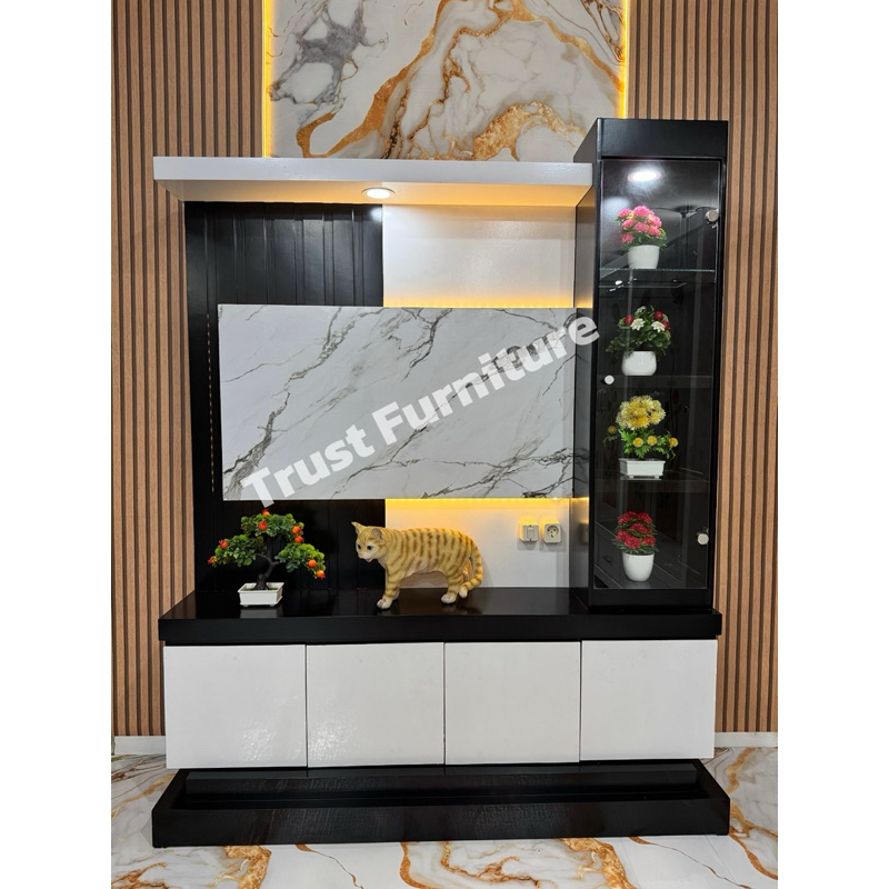 Bufet Lampu Led/Bufet Tv Corak Marmer/Bufet Tv Lampu/Bufet Tv Kekinian/Bacdrop/Bufet Backdrop/ Bufet Tv/Bufet Corak Marm