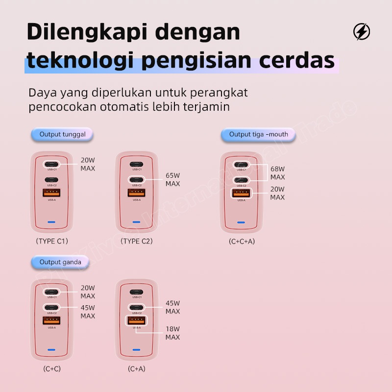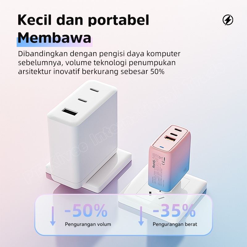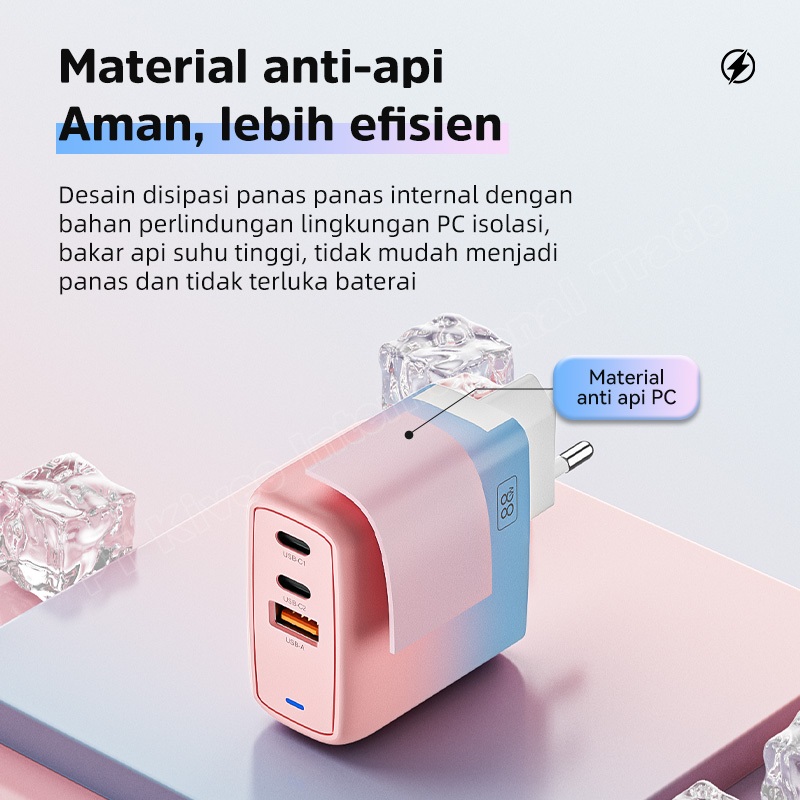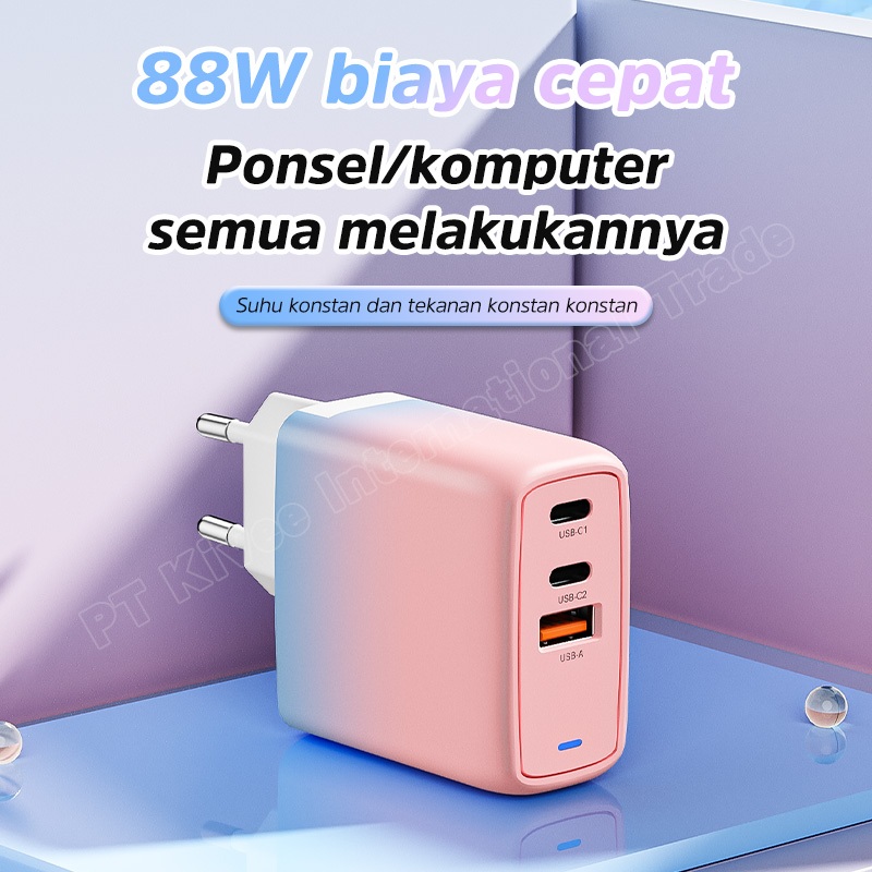 [Star] KIVEE KV-AE144 Charger 88W Super Fast Charging Type-C*2 + USB PD QC 4.0 Universal Warna Pink