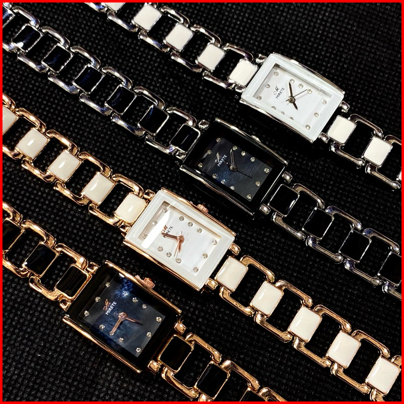 Jam Tangan Wanita Mirete Fashion Model Bracelet Ceramic Persegi Analog