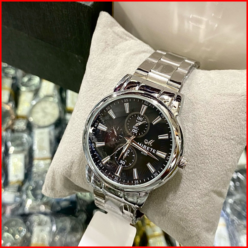 Jam Tangan Pria Mirete Stainless Steel Tahan Air Analog Tipe 9036-d