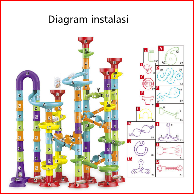 Mainan Marble Run 197pcs Track Balok Edukasi Anak Diy Usia 3 Puzzle Kreatif