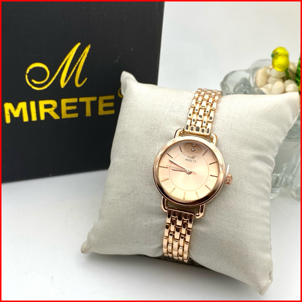 Jam Tangan Wanita Mirete R268 Analog Imut Bahan Stainless Mewah Elegant Free Batrai Cadangan Jam Cewek Mirete Original