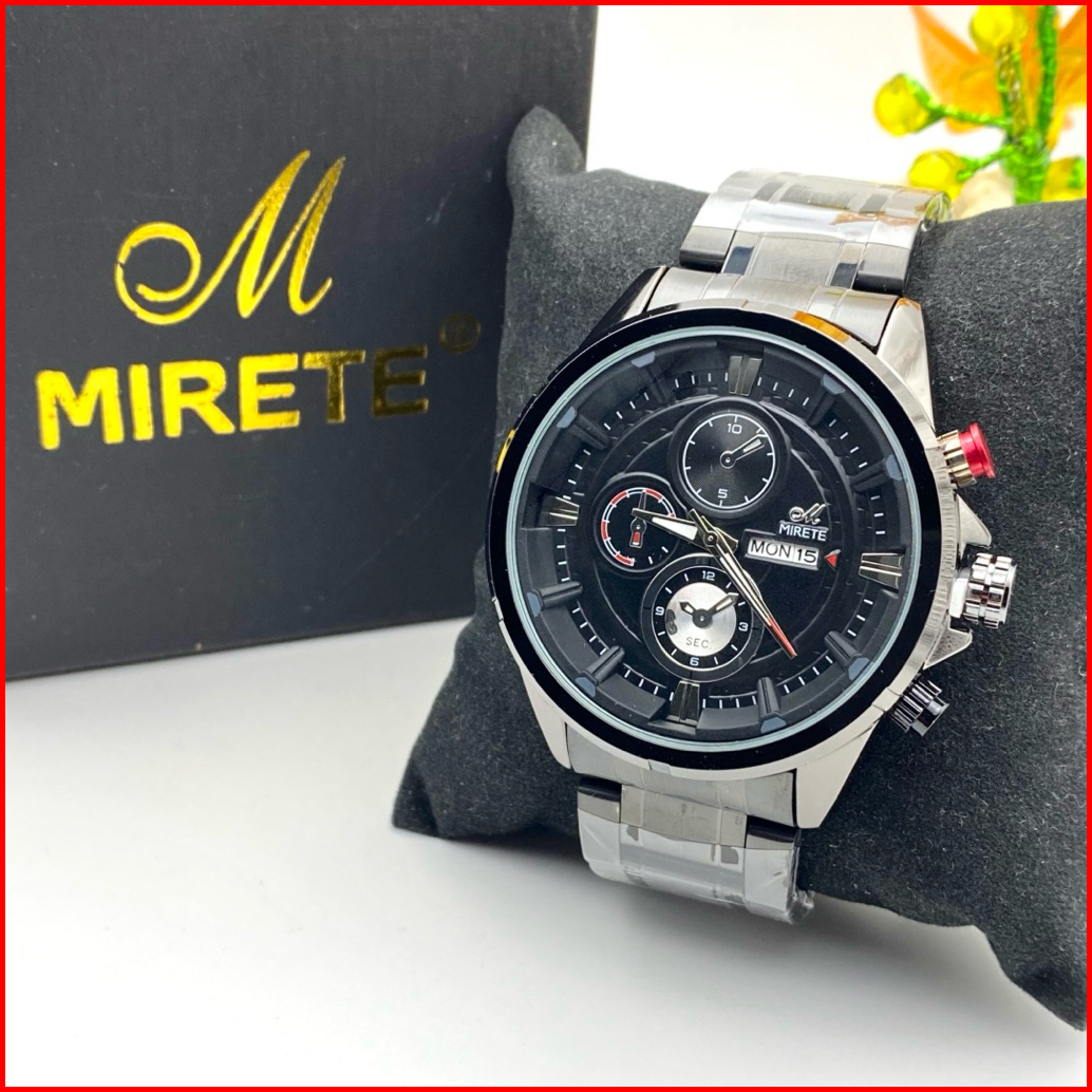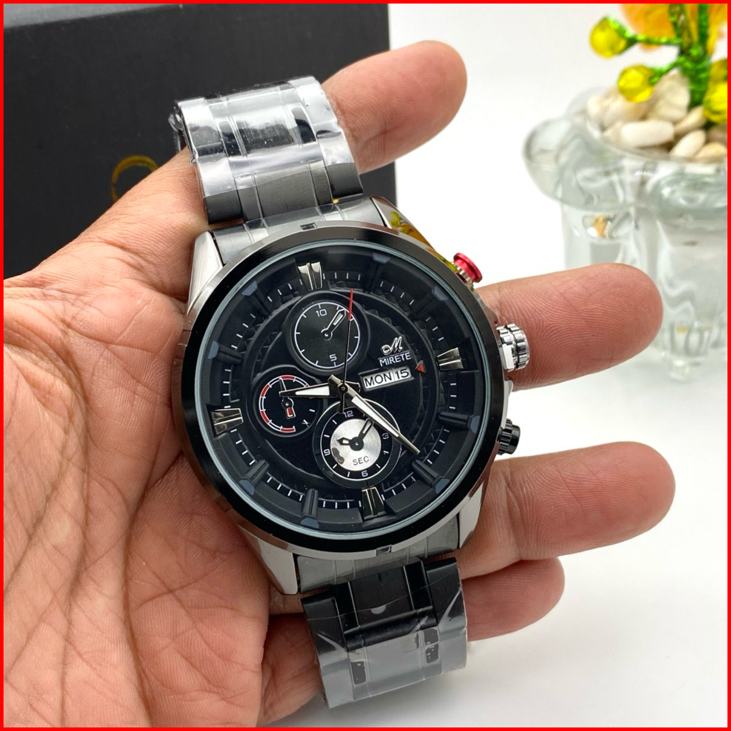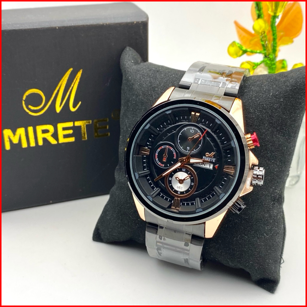 Jam Tangan Pria Sporty Mirete Original Tipe-8937 Bahan Stainless Steel Ikatan Rantai Tahan Air Tanggal Dan Hari Aktif An