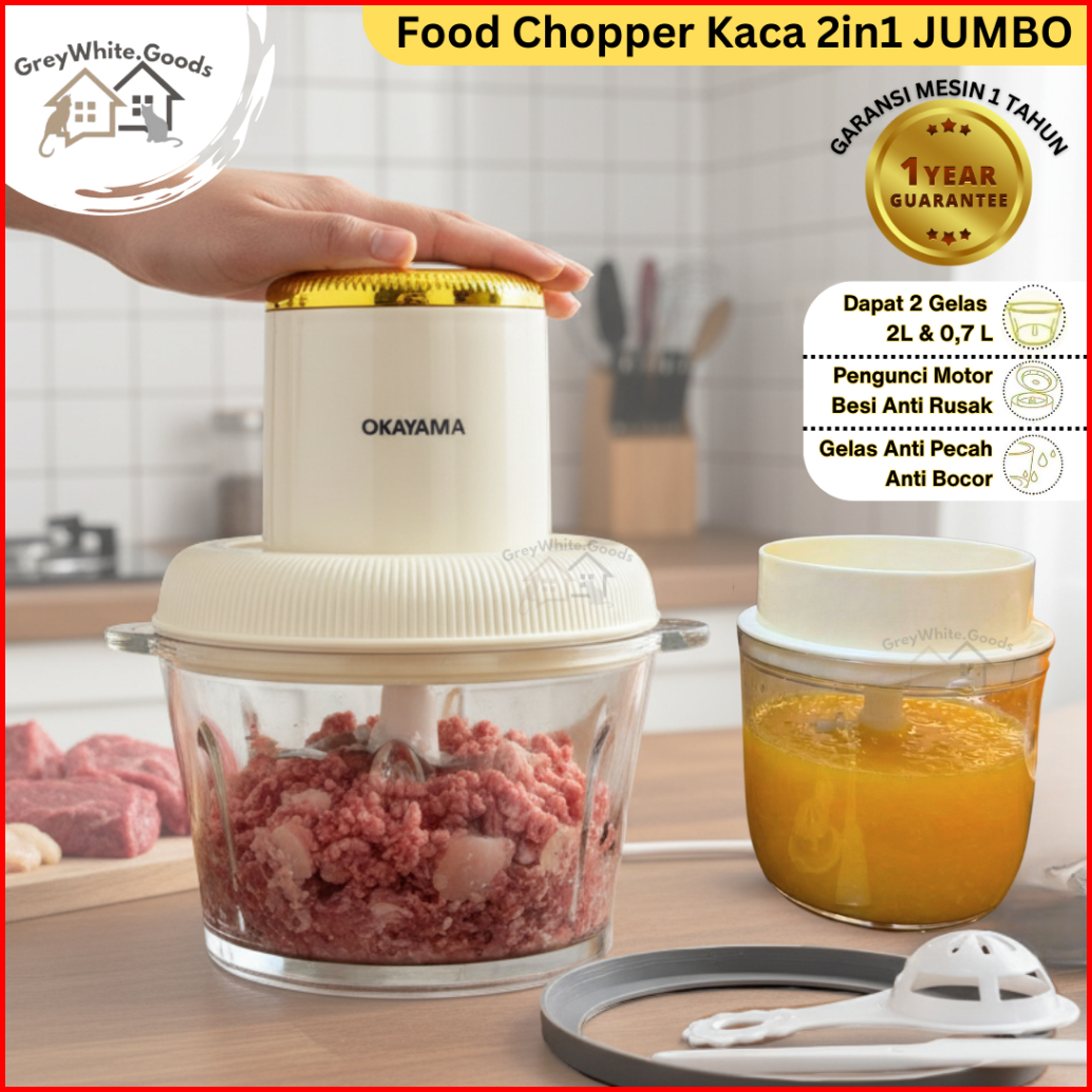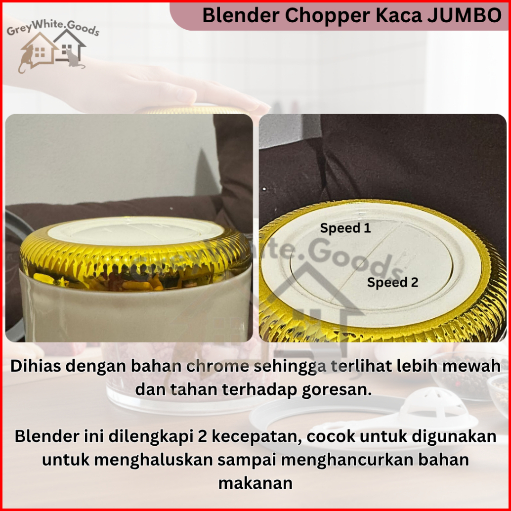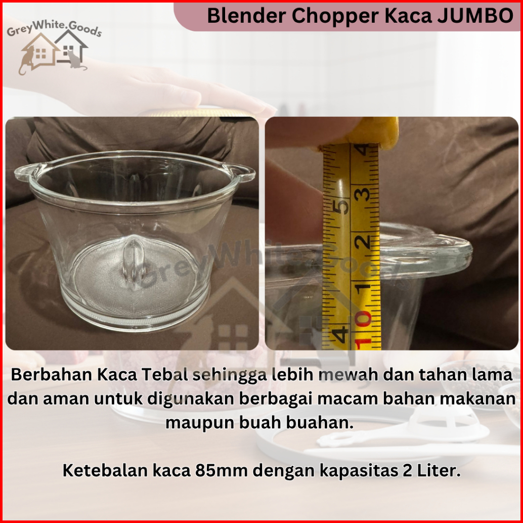 Food Processor 2in1 Blender Chopper Kaca Jumbo 2 Liter Penggiling Daging Penghalus Makanan