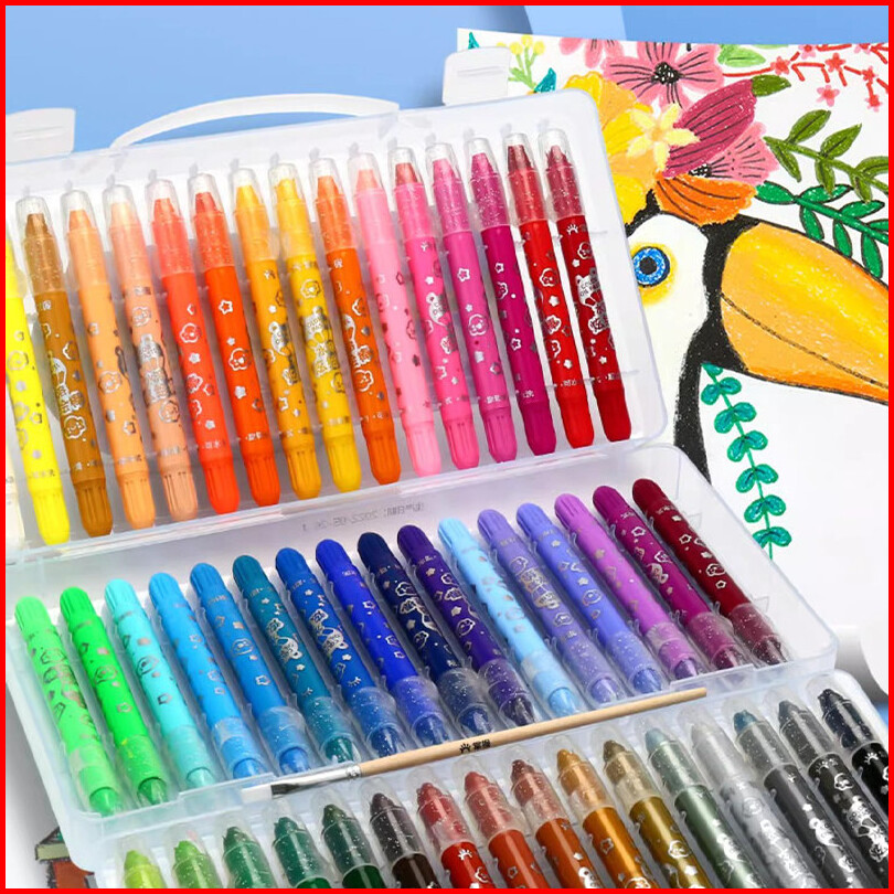 Grasp Silky Crayon Lukis 12 24 36 48 Warna Cerah Tidak Mengotori Tangan Free Brush Putar Ops001