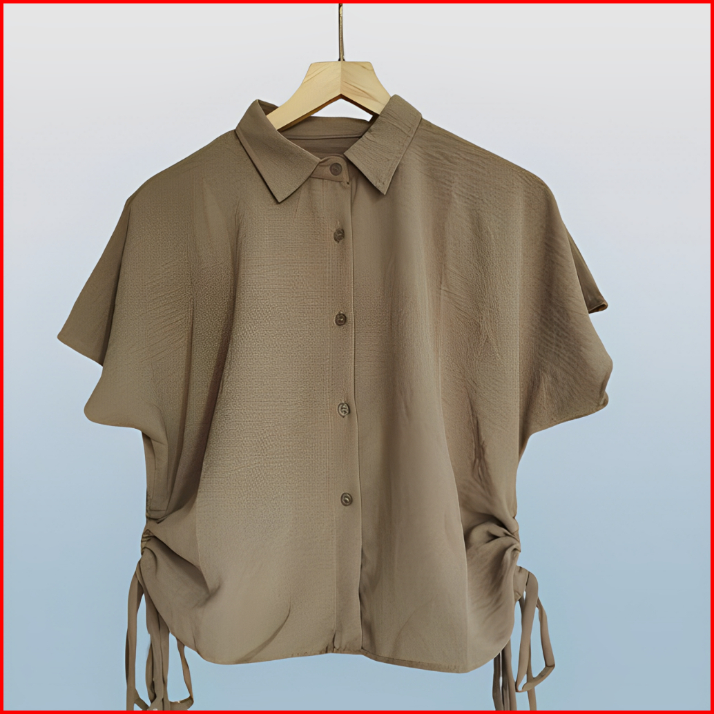 Terlaris Kemeja Wanita Crop Lengan Pendek Crinkle Tali Samping