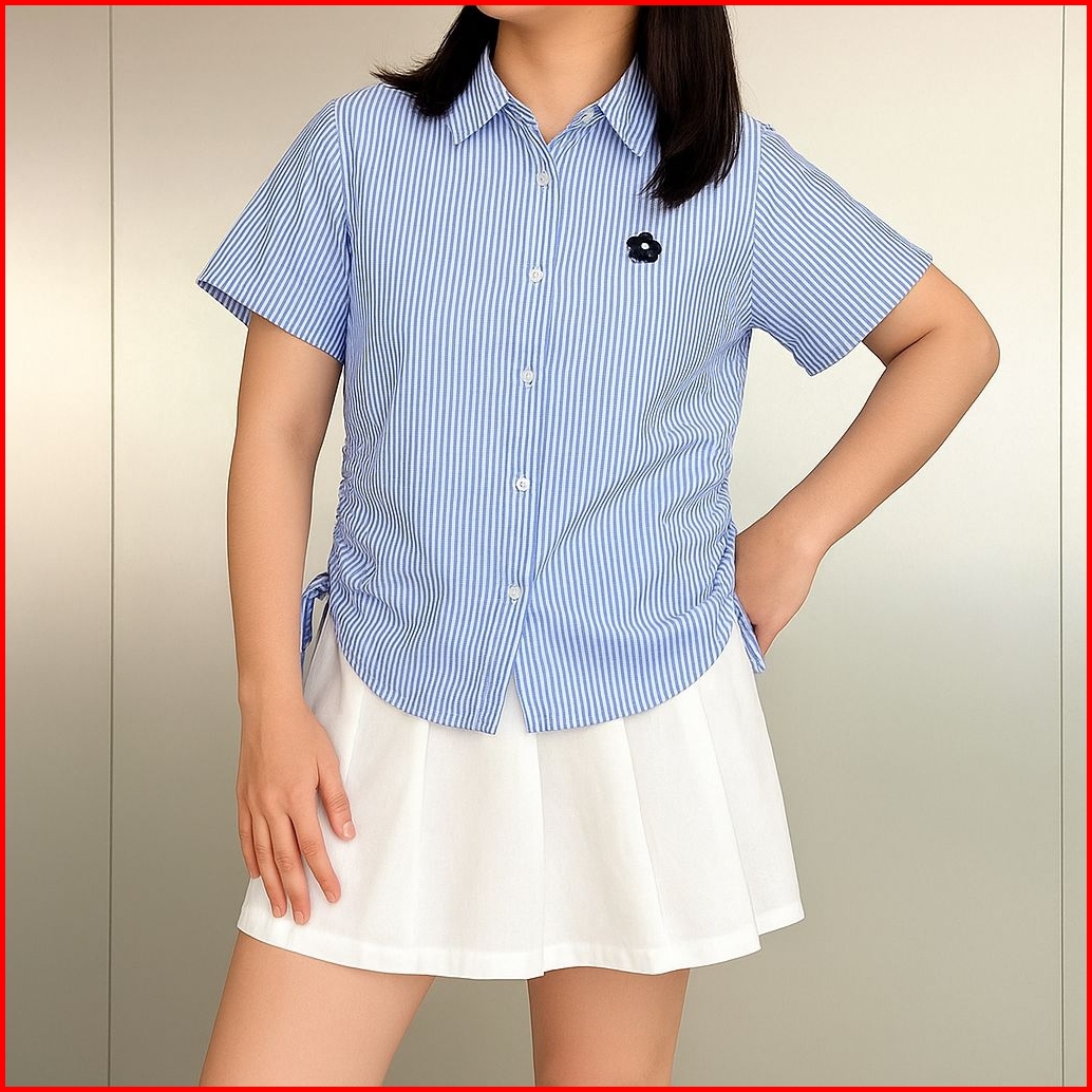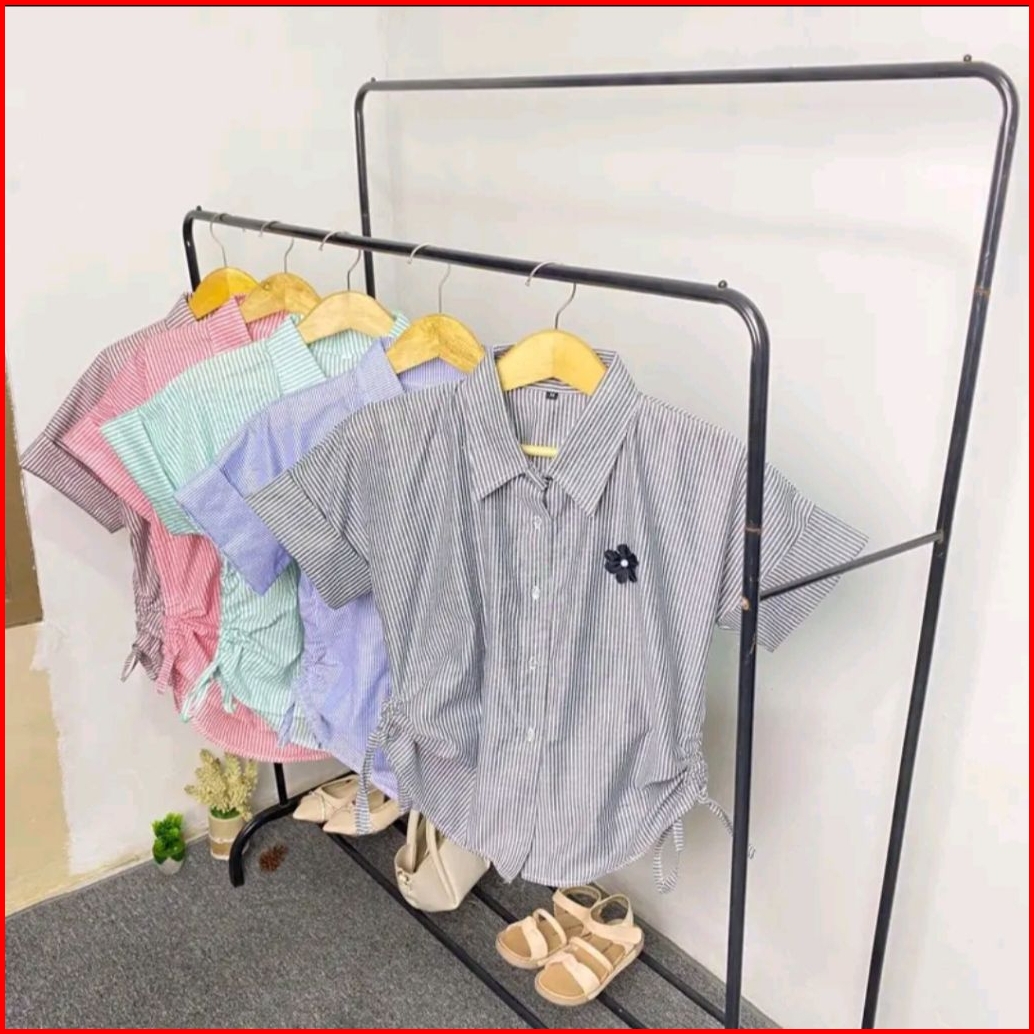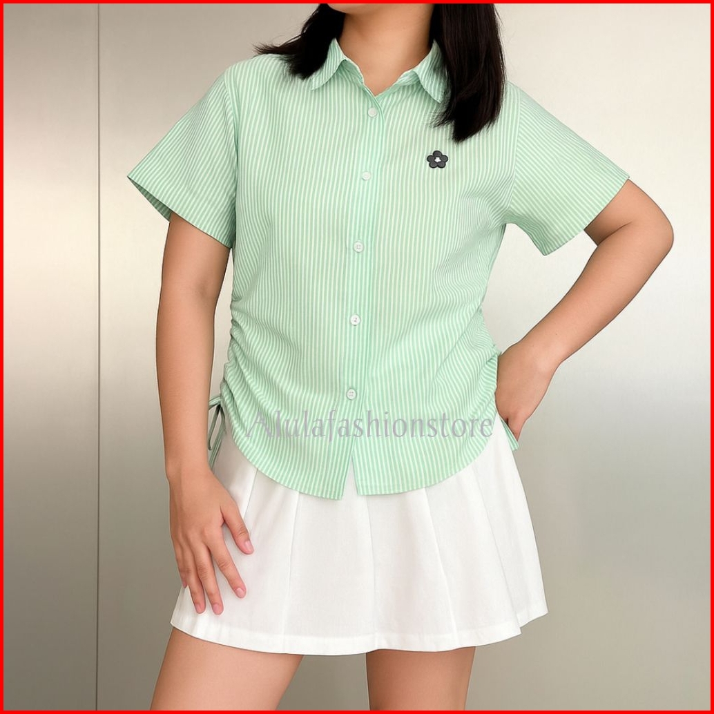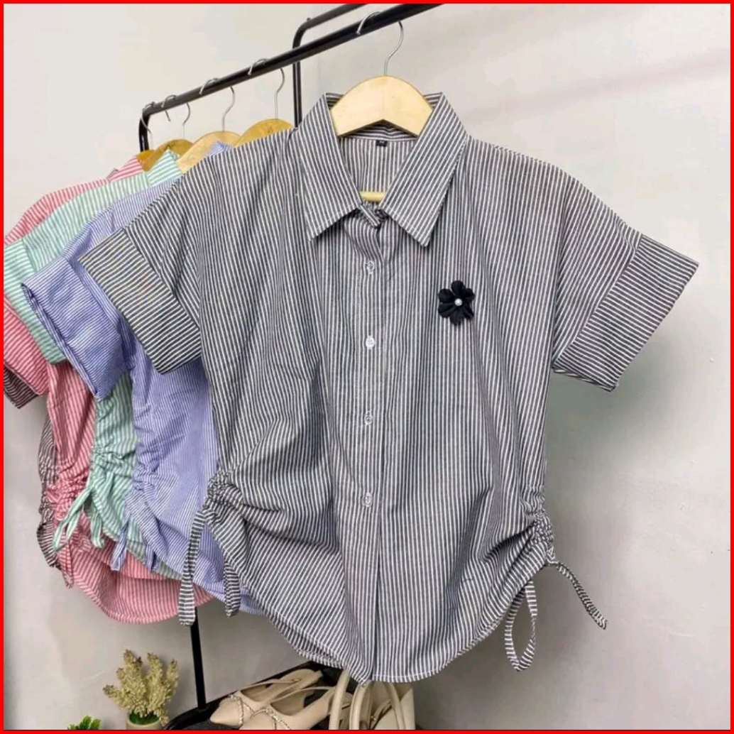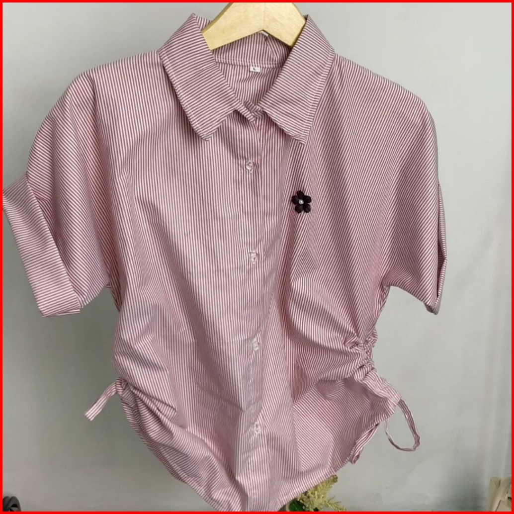 Annara Stripes Shirt - Kemeja Wanita Kekinian Lengan Pendek Kemeja Salur Wanita
