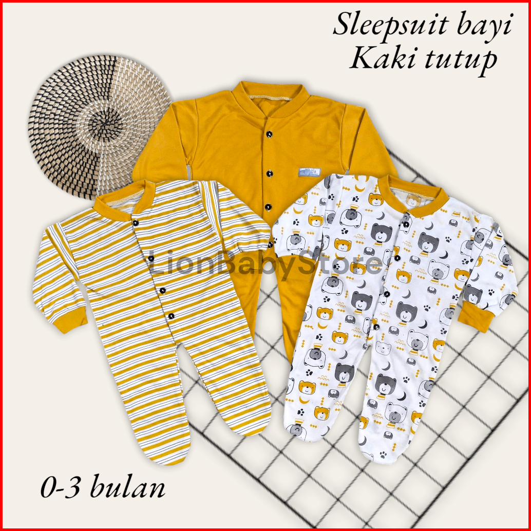 Isi 3 Pcs Sleepsuit Bodysuit Baju Tidur Bayi 0-6 Bulan Varian Tutup Warna Kuning Mustard