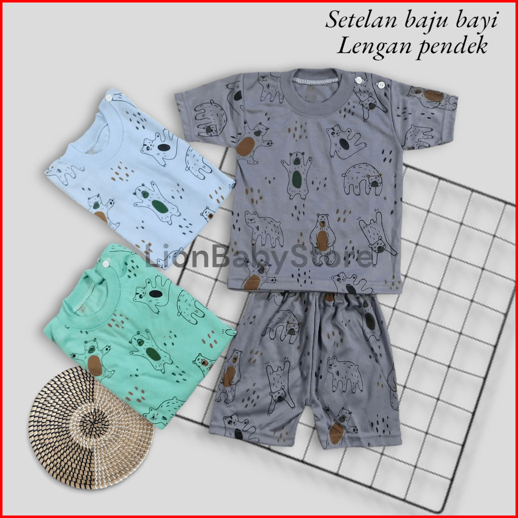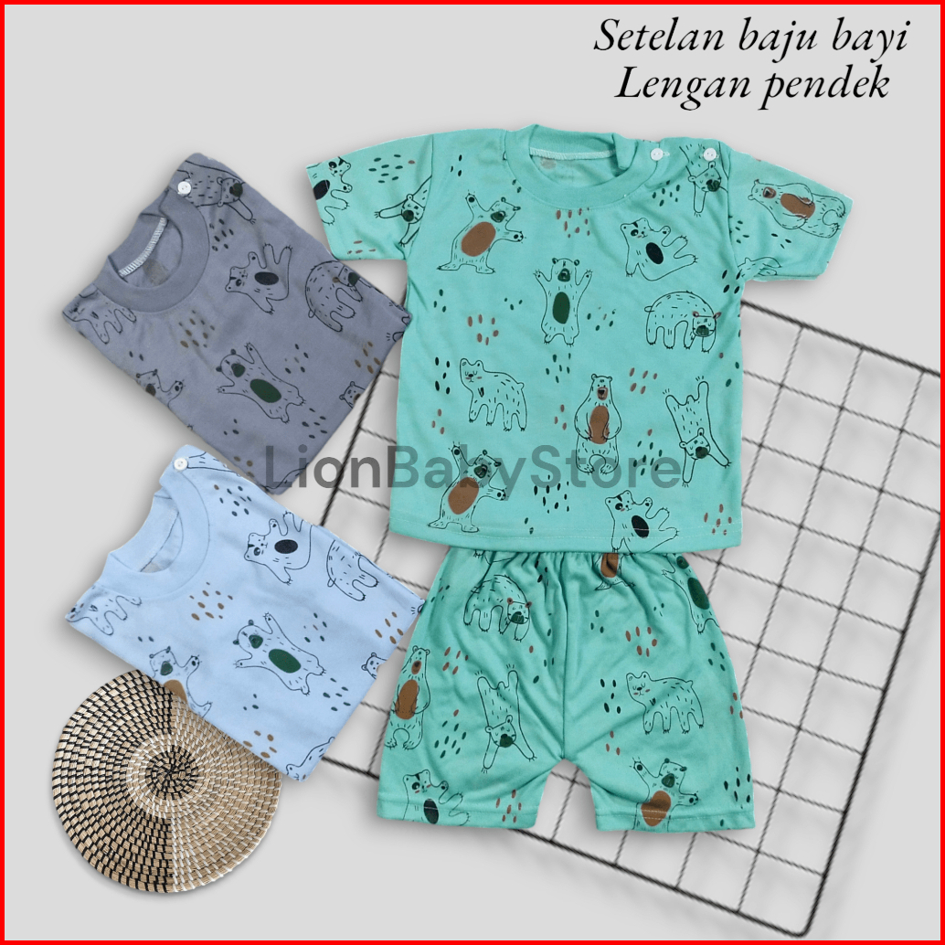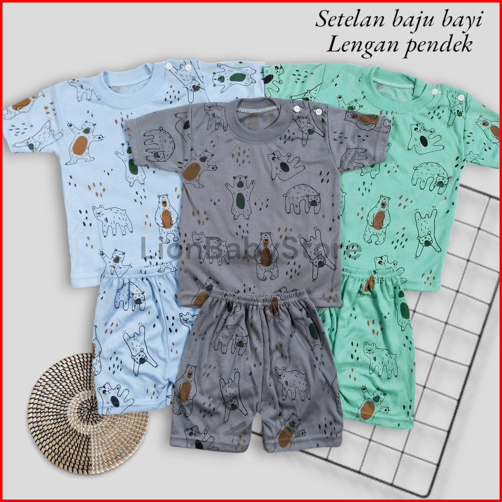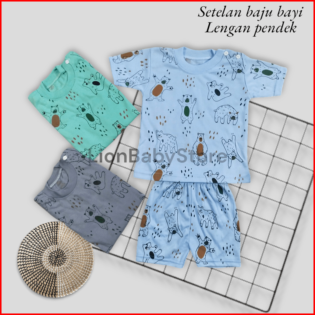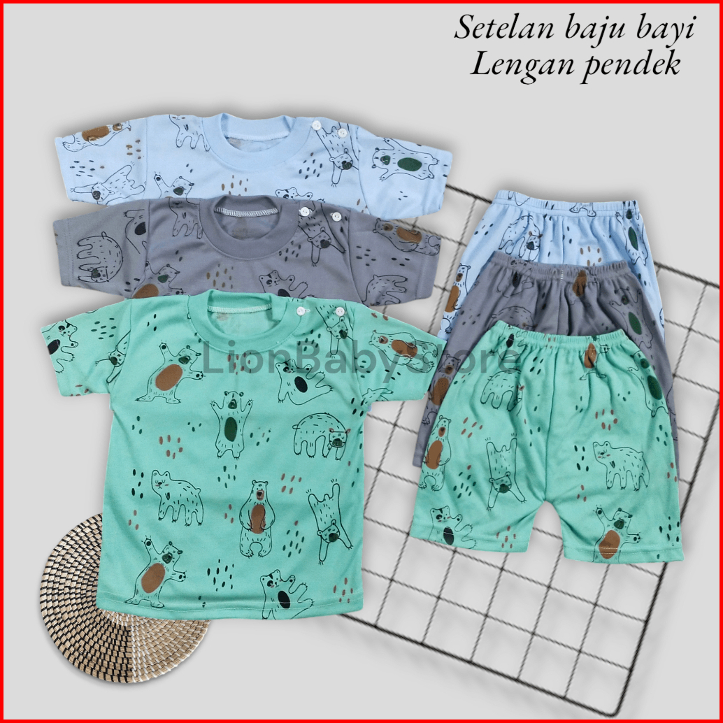 3 Pcs Setelan Baju Bayi Lengan Pendek Motif Beruang Kecil Anak Usia 3-12 Bulan Laki-laki Perempuan