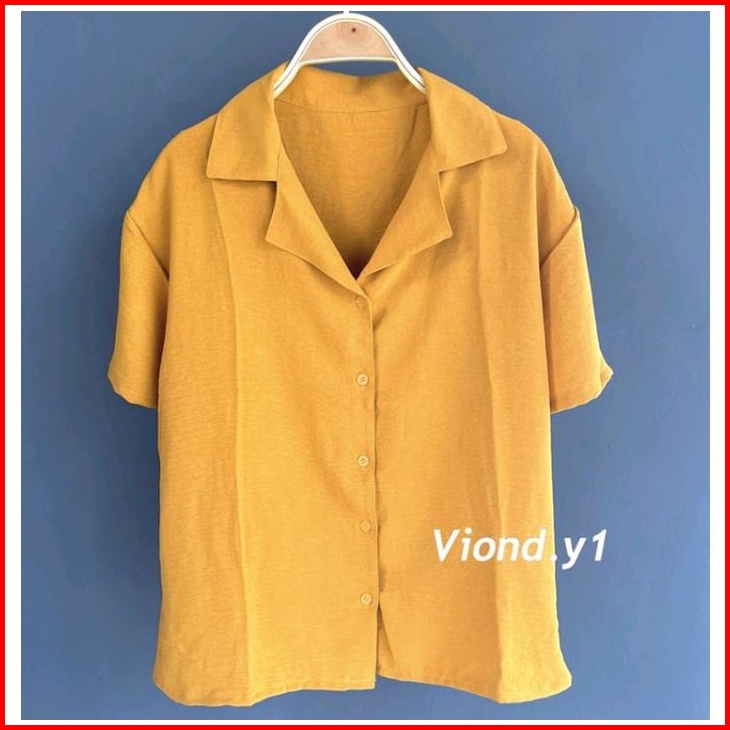 Kemeja Lengan Pendek Crinkle Bluose Polos Lengan Pendek Wanita