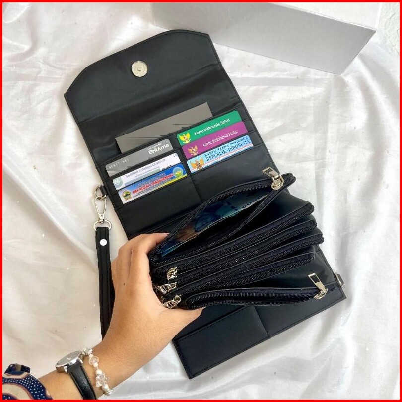 Mecca Dompet Wanita Panjang Multifungsi 6 Ruang Utama 12 Slot Kartu 1 Slot Hp Dompet Elegan Kekinian