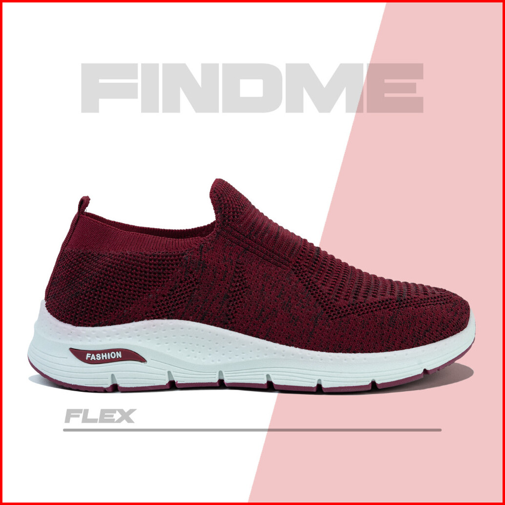 Findme 36-41 Sepatu Sneakers Wanita Tanpa Tali Praktis Sport Lembut Nyaman Bahan Flyknit Flex