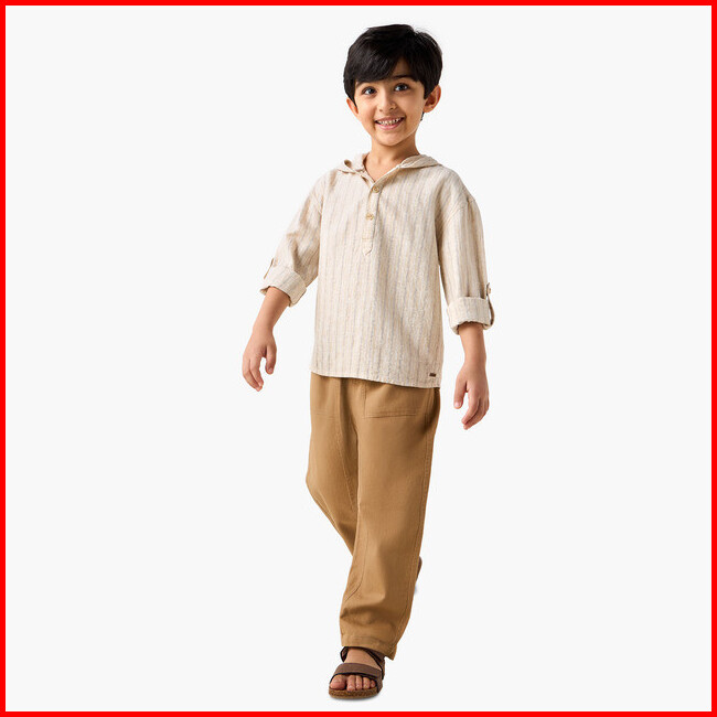 Babyshop Atasan Anak Laki-laki Eligo Striped Hooded T-shirt With Long Sleeves Beige Light