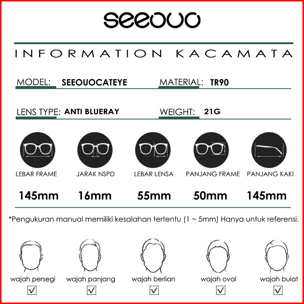 Seeouo Kacamata Antiradiasi Blueray Model Cat Eye Stylish Bahan Tr90 Ringan Kokoh Bisa Minus Wanita 8342