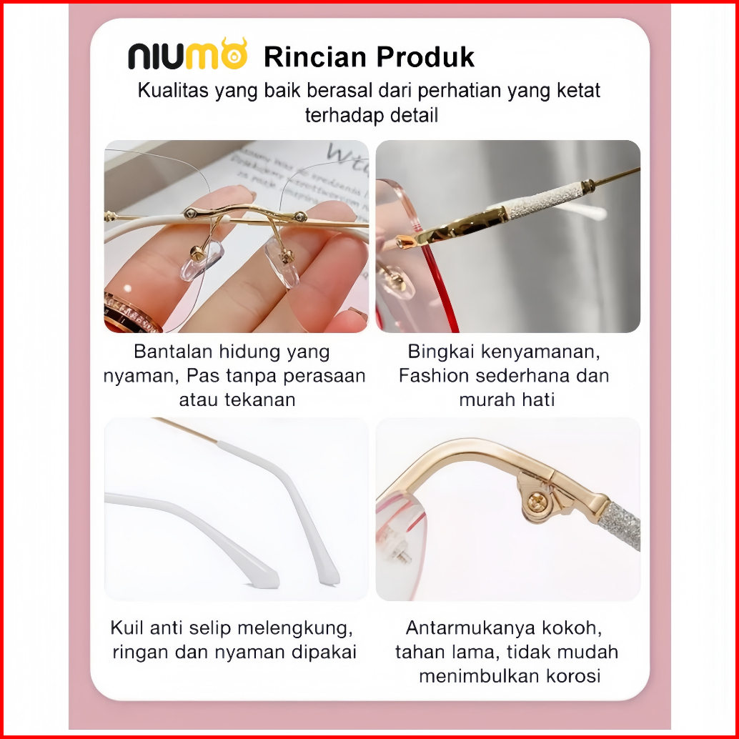 Niumo Kacamata Photochromic Fashionable Dengan Dekorasi Sempadan Bersinar Yang Cocok Wanita Anti Radiasi Biru