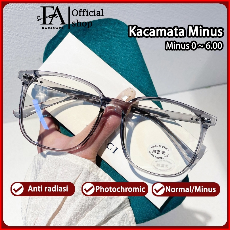 Fomamata Kacamata Minus Photocromic Wanita Anti Radiasi Blueray Frame Square Astigmatism Fashion Uv400 2 In 1 Bluechromi