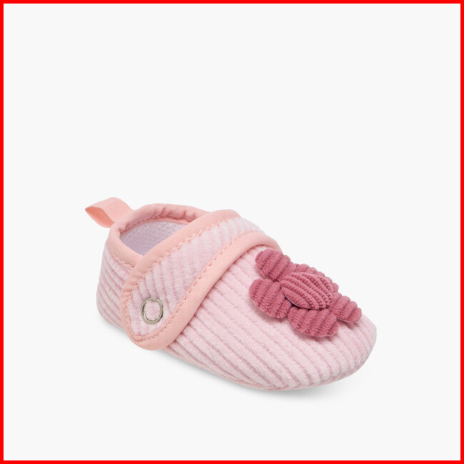 Babyshop Juniors Ribbed Booties With Floral Accent And Button Closure