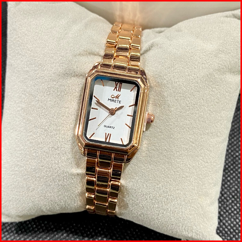 Jam Tangan Wanita Mirete Fashion Model Bracelet Stainless Steel Persegi Analog