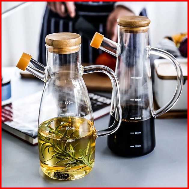 Botol Minyak Kaca Tempat Minyak Goreng Tutup Kayu Aesthetic 700 Ml
