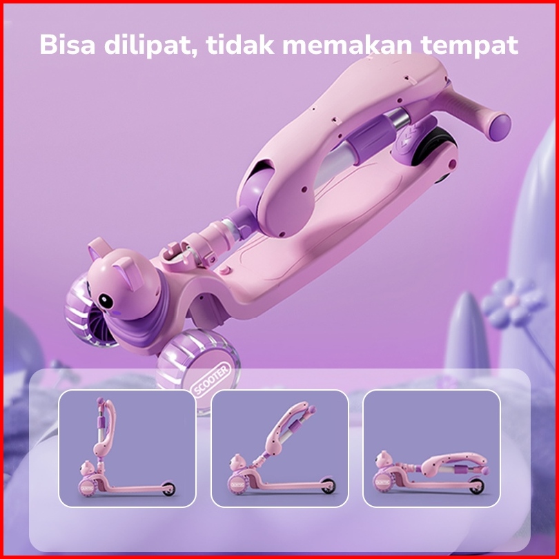 Skuter Anak Roda 3 Bisa Duduk Berdiri Skuter Lipat Lampu Led Dan Tinggi Bisa Disesuaikan