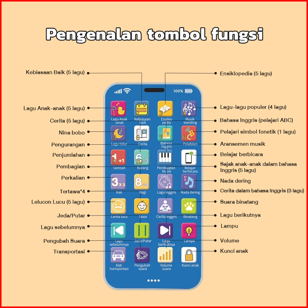 Mainan Handphone Edukasi Anak Belajar Huruf Dan Angka Dengan Musik Suara