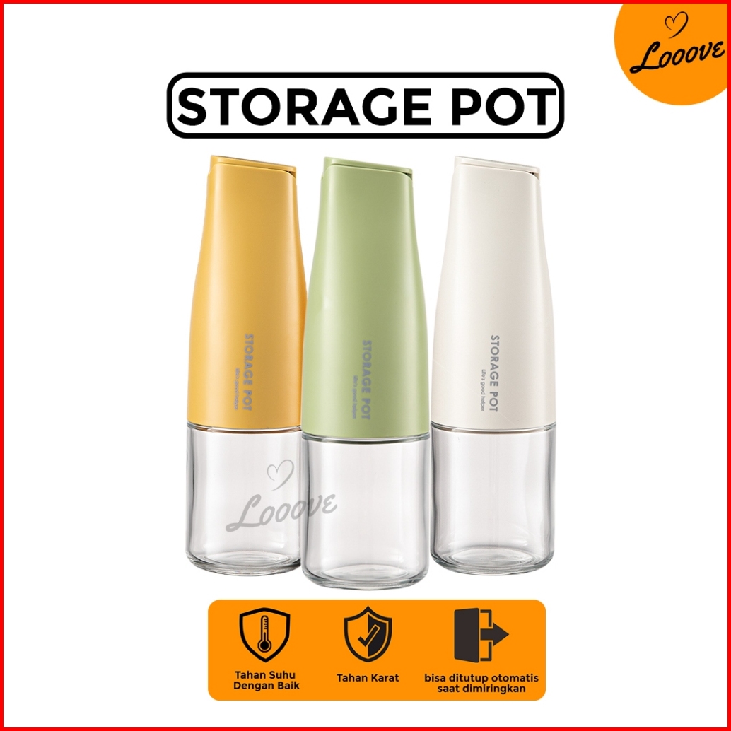 Botol Minyak Kaca Otomatis Buka Tutup Storage Pot 500ml Anti Tetes Praktis