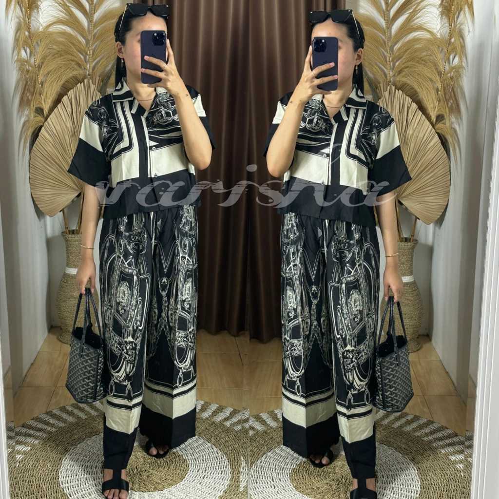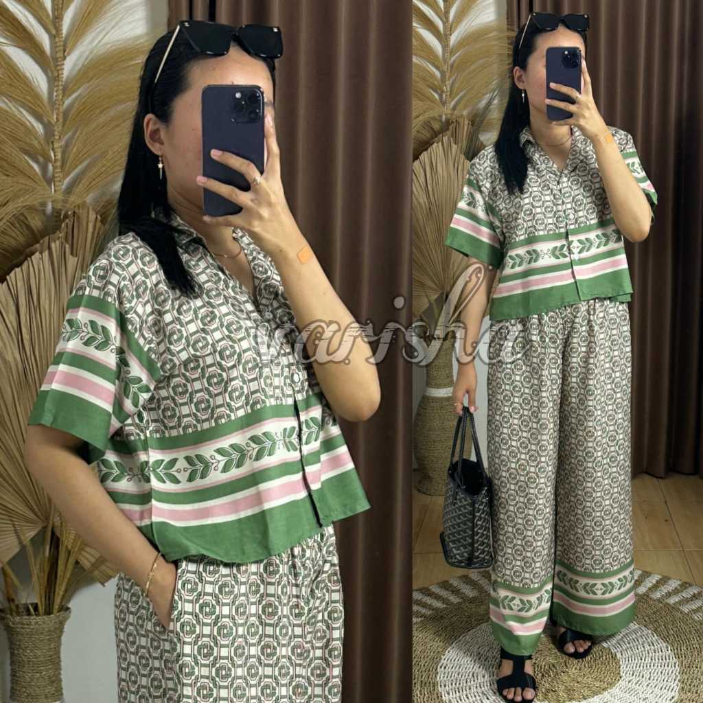 New One Set Crop Wanita Kekinian Setelan Celana Kulot Hightwaist Rayon Premium