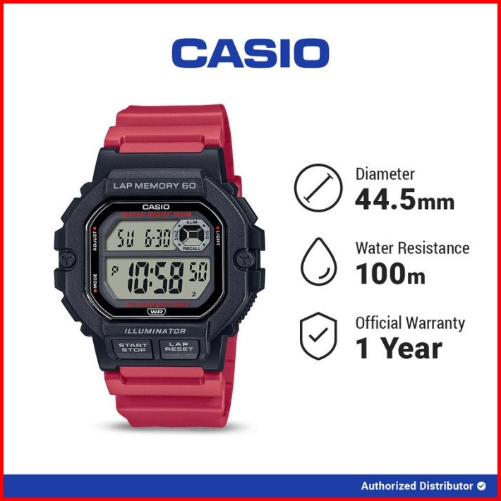 Casio Jam Tangan General Ws-1400h-4avdf Digital Water Resistance Red