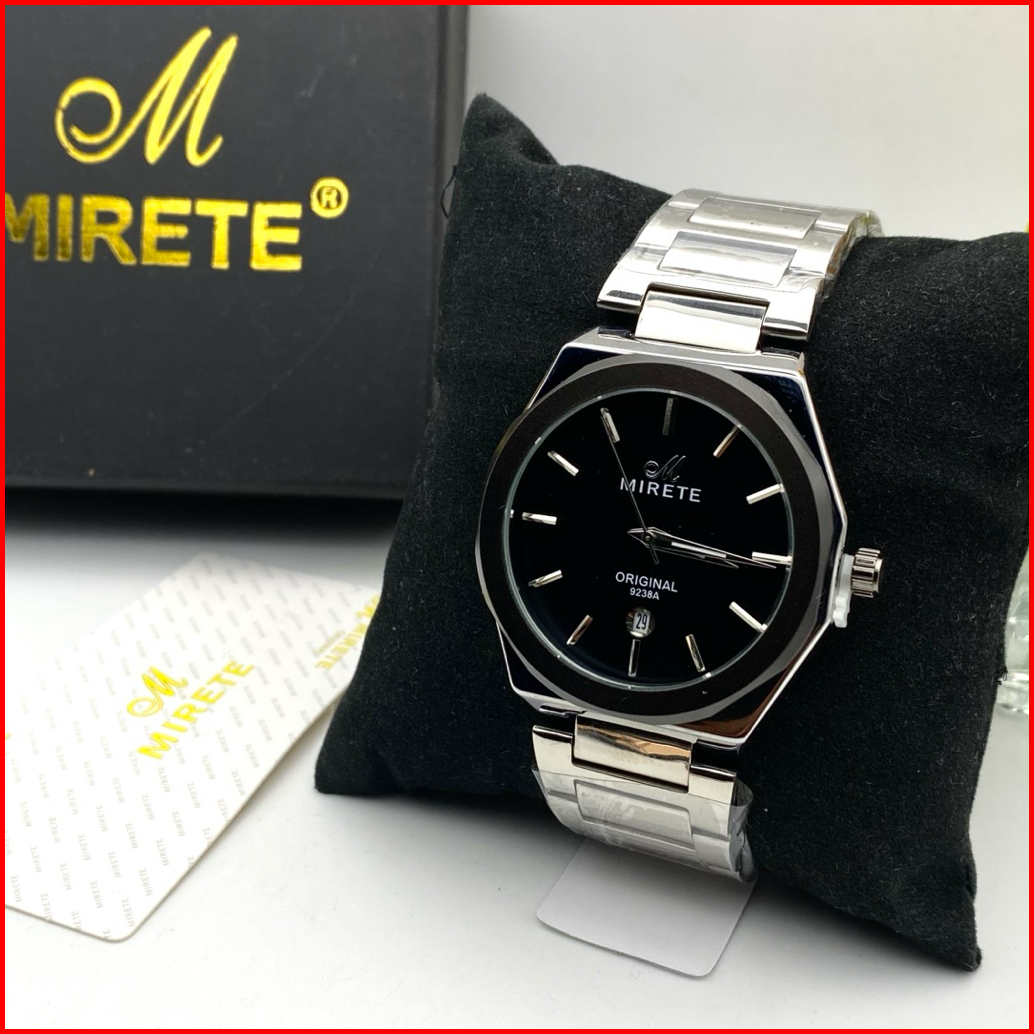 Jam Tangan Pria Mirete Watch Tipe-9238a Rantai Bahan Stainless Stell Tanggal Aktif Tahan Air Analog Casual Elegant Produ