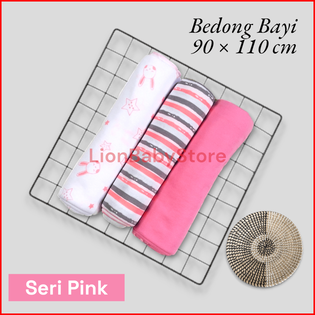 3 Pcs Bedong Bayi Motif Dan Polos Pernel Selimut Baby Newborn 100 X 90