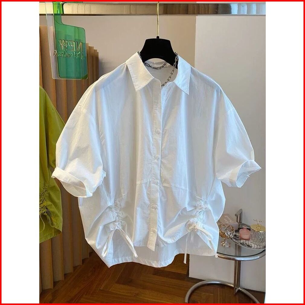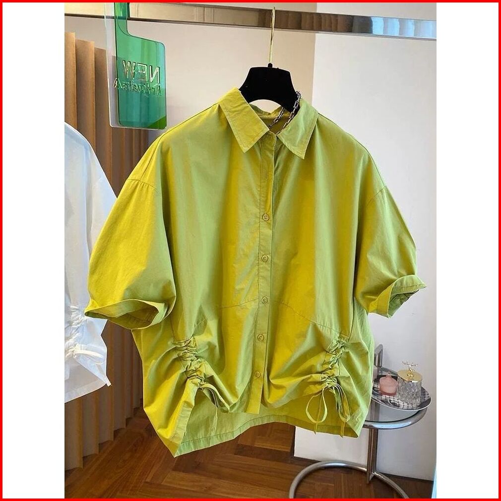 Nando Kemeja Daily Kasual Wanita Bahan Katun Poplin Model Serut Lengan Pendek 8350