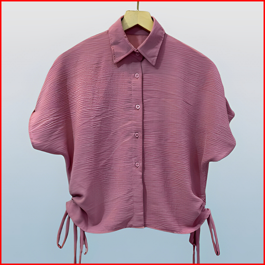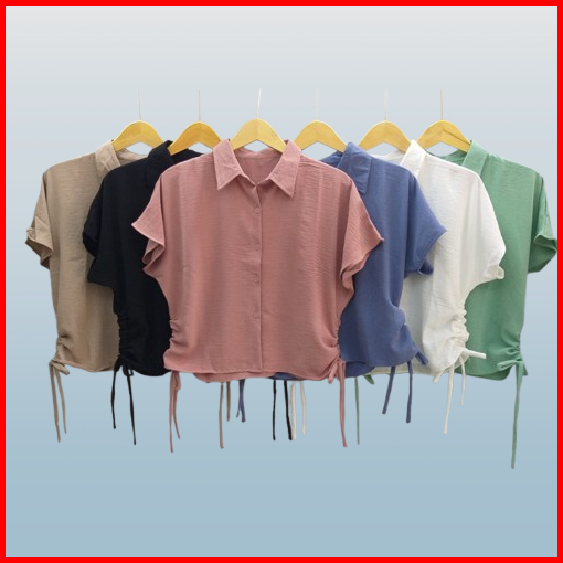 Kf- Kemeja Crop Wanita Crinkle Lengan Pendek Tali Samping
