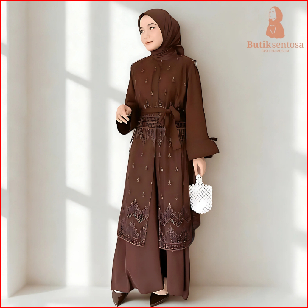 Baju Gamis Kekinian Coklat Mahogany Gaun Pesta Brokat Kondangan Dres Ceruti Premium Mewah Elegan