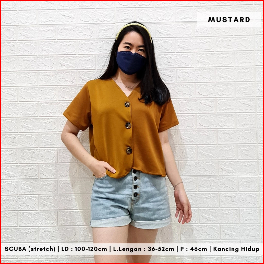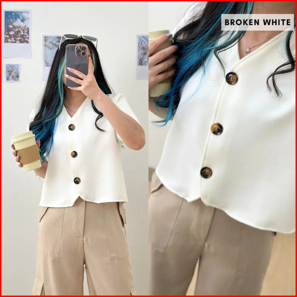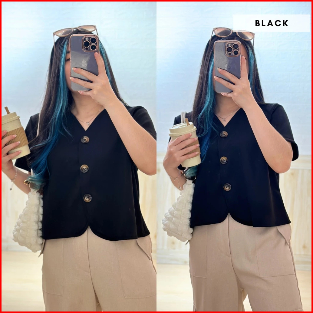 Kemeja Crop Polos Wanita Lengan Pendek V Neck By Ortega