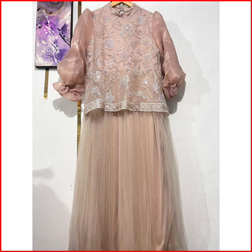 Gamis Senja Mewah Elegan Bahan Tile Garden