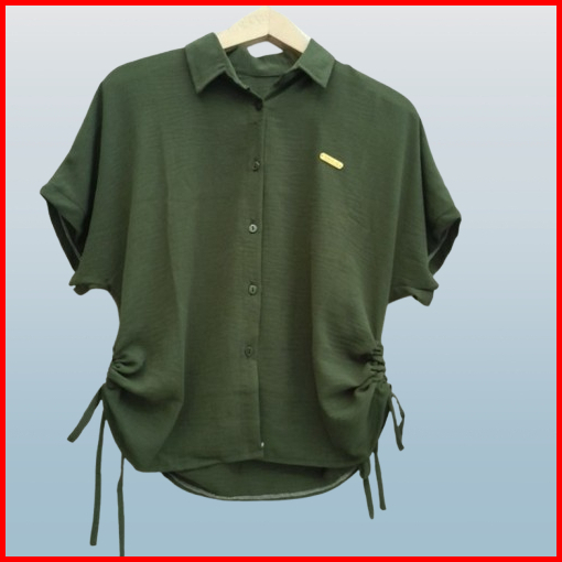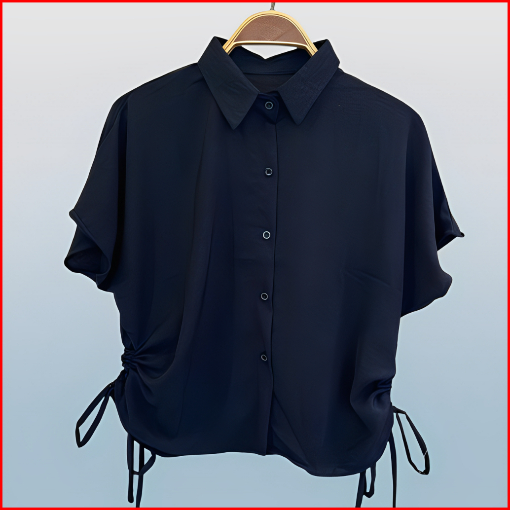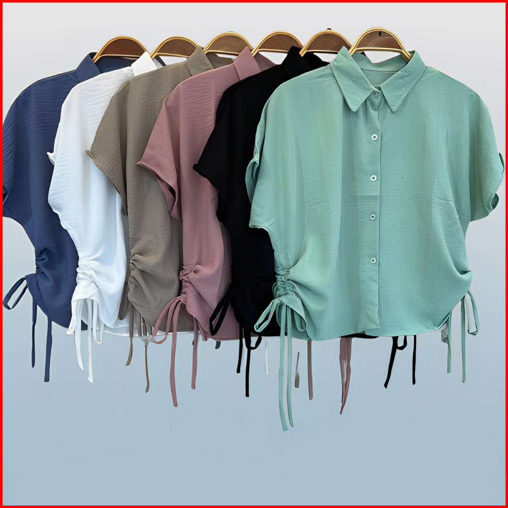 Kemeja Crop Wanita Crinkle Lengan Pendek Tali Samping