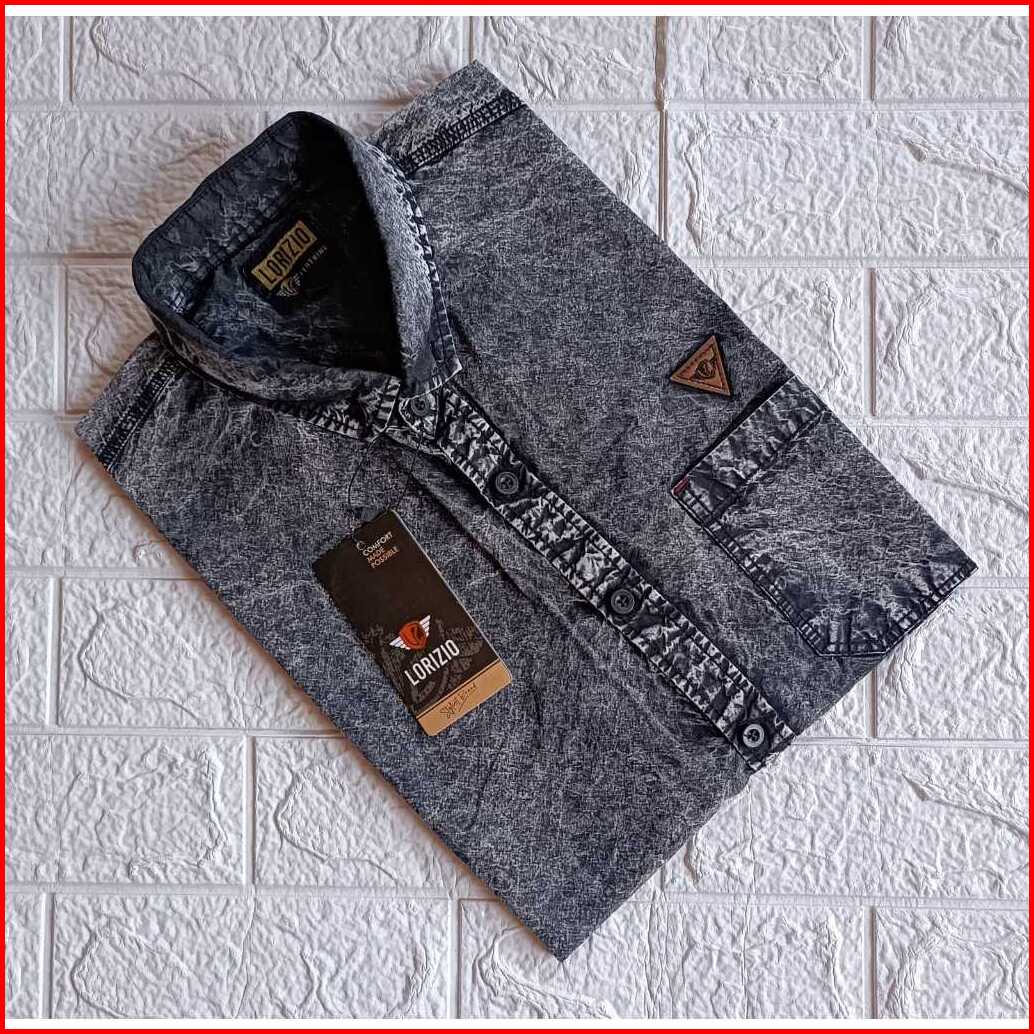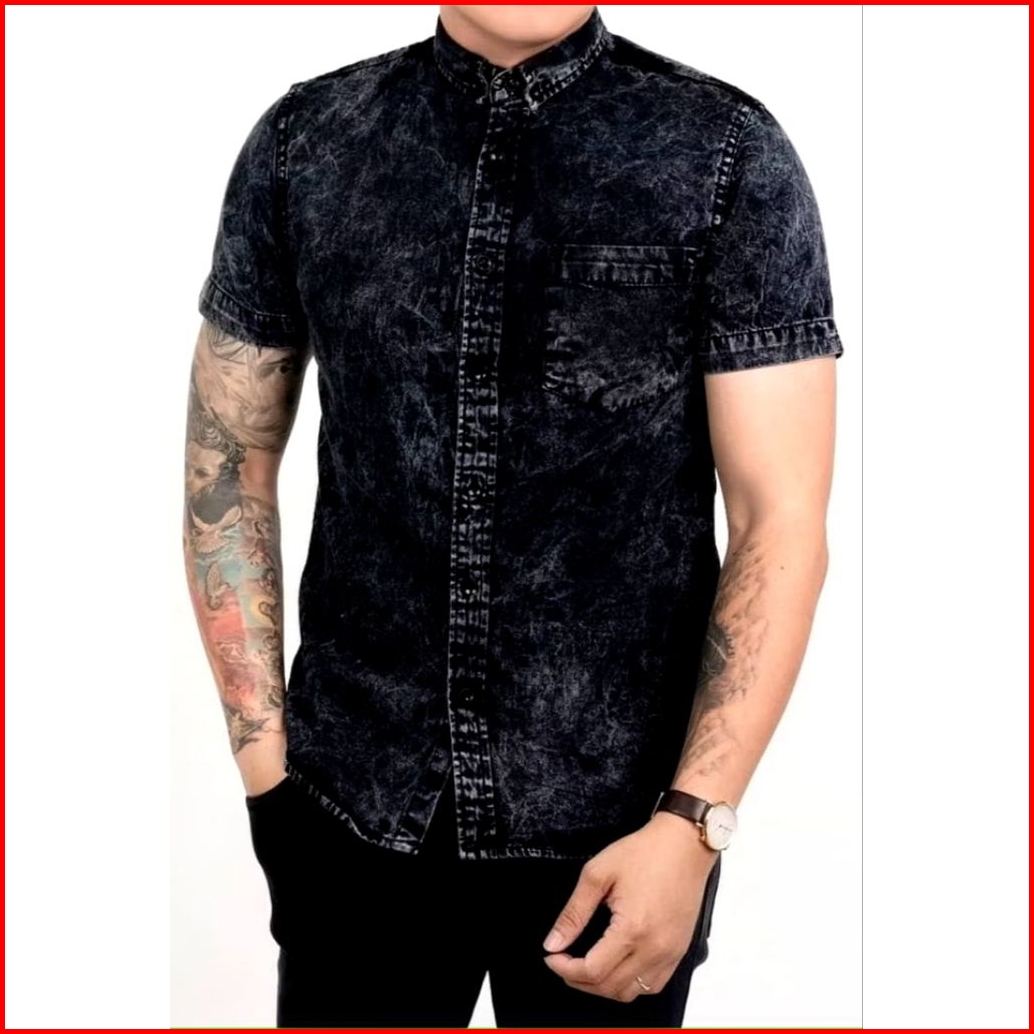 Kemeja Pria Jeans Denim Washed Lengan Pendek Casual