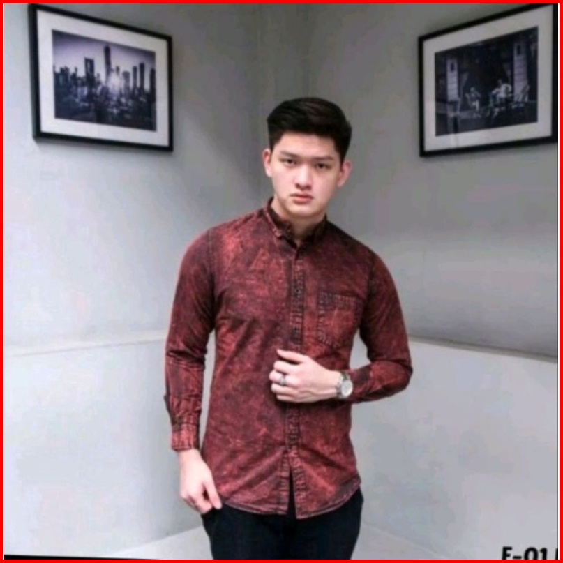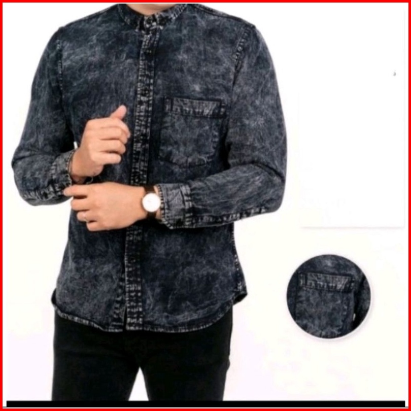 Kemeja Jeans Pria Seni Warna Denim Lengan Pendek Kemeja Cowok Lengan Pendek Pria Denim Seni Wash