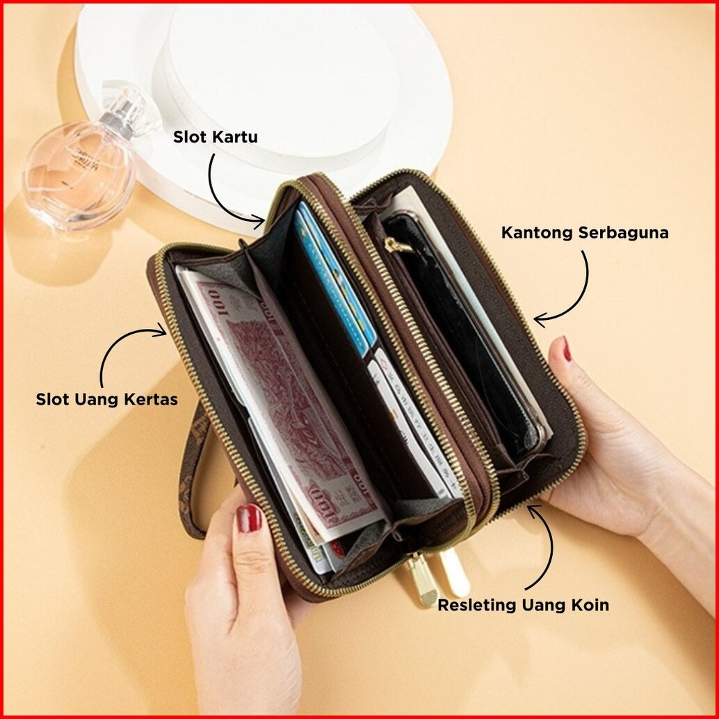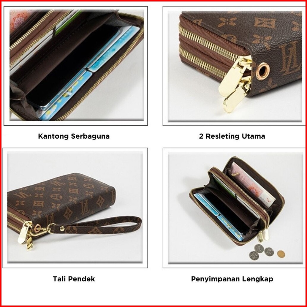 Dompet Panjang Wanita 2 Resleting Premium Muat Hp Kulit Coklat Candy Wa446b7 Cewek Branded Batam Slot Kartu Uang Besar K