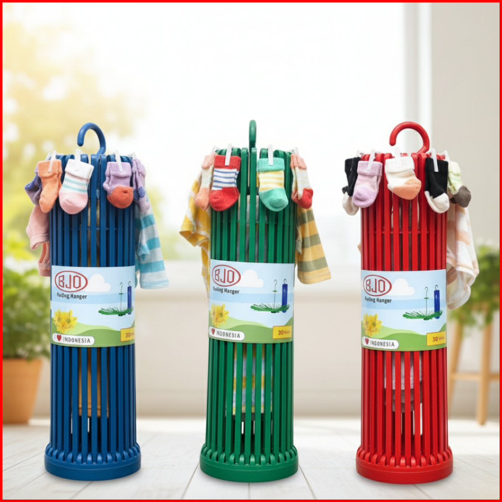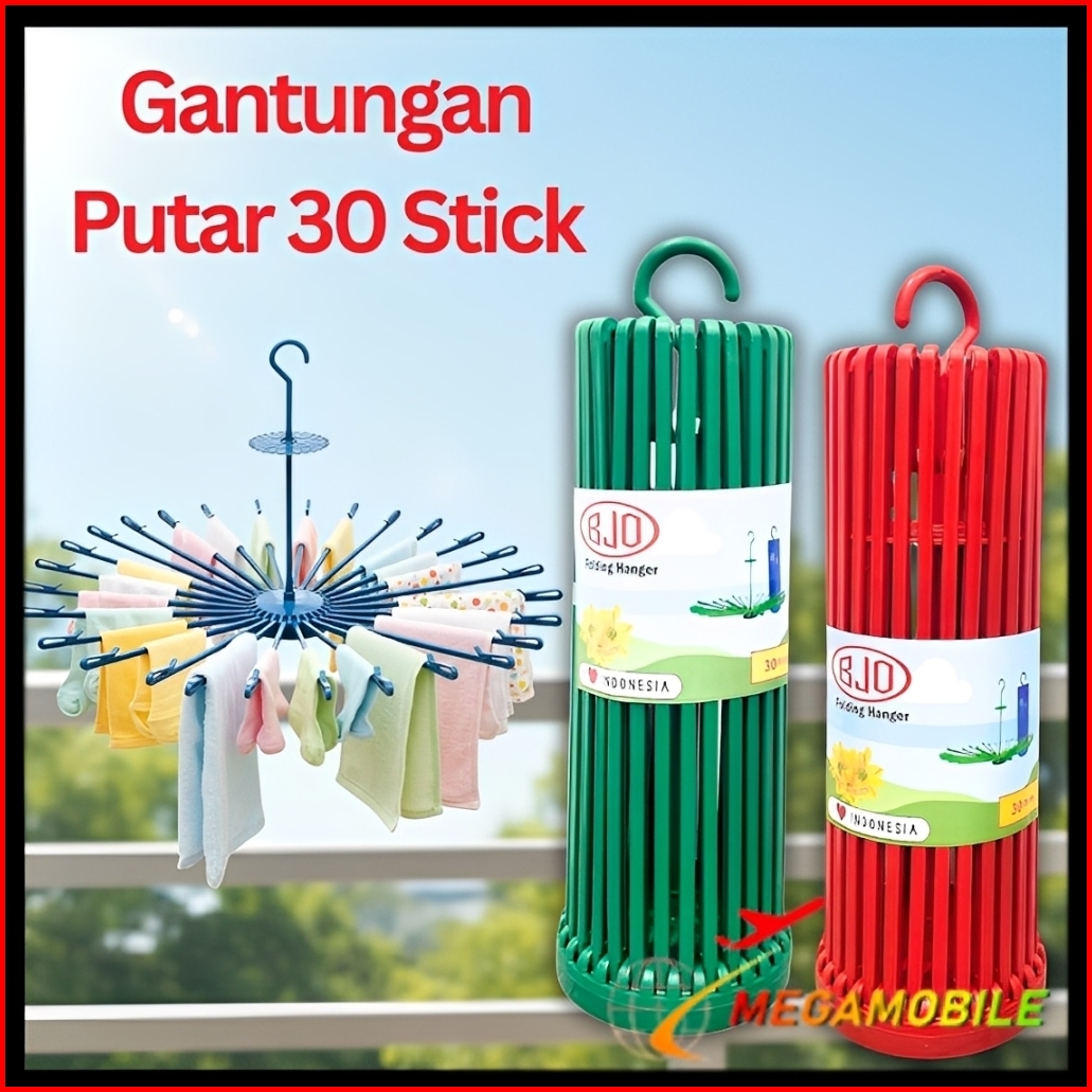 Mm - Gantungan Jemuran Lipat 30 Stik Folding Hanger Jemuran Baju Bayi Kaos Kaki 30 Stick Gantungan Baju Putar Bahan Plas